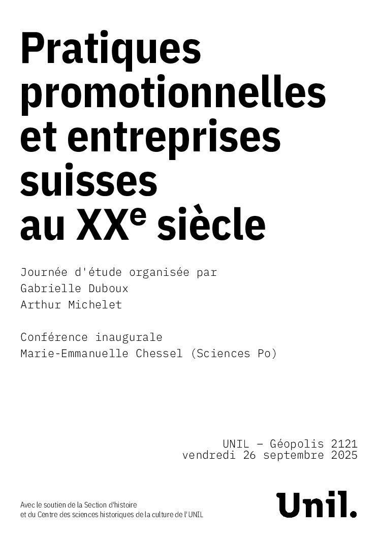 Le 26 septembre 2025, j’ai participé à la table ronde “Pratiques promotionnelles et entreprises suisses au XXe siècle”, organisée à l’Université de Lausanne. L’événement rassemblait chercheur·e·s, historien·ne·s de la communication et professionnel·le·s des archives pour discuter des enjeux liés à la conservation et à l’étude des pratiques publicitaires du XXe siècle.